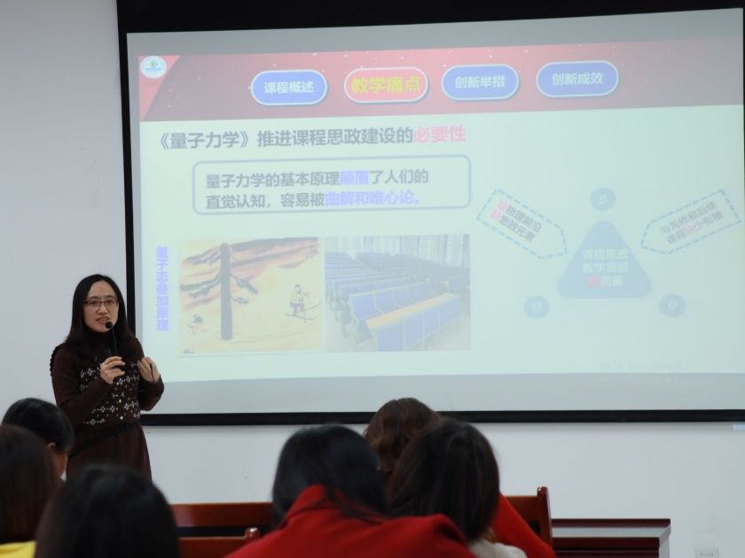 为研究如何将课程思政有机融入课程数字化,提升教师数字文化素养和教学质量,扎实推进国家教育数字化战略行动,同时依托市校融合发展战略工程项目,3 月 19 日,教育与心理科学学院在特教楼 302 室举办了第二期教师数字化素养提升专题论坛。济南大学物理与技术学院课程思政教学名师王静副教授进行了“课程数字化中的课程思政”专题分享,学院多名教师参加。