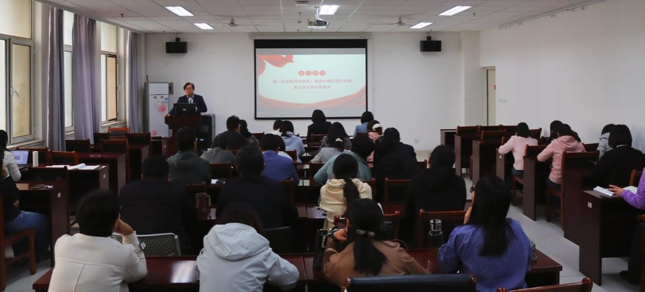 为深刻理解党的二十届三中全会内涵,贯彻落实工作,10月23日下午,学院党委书记季竹君为全院教职工作党的二十届三中全会精神宣讲报告,强调要深入学习领会党的二十届三中全会精神,以更高站位、更大力度、更实举措进一步深化教育综合改革,把进一步全面深化改革的指导精神转化为推进学院各方面发展的强大力量。