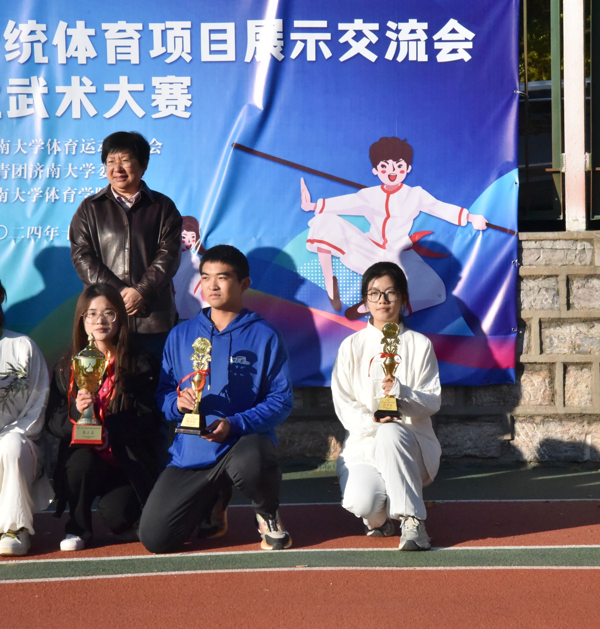 为进一步提高学生民族文化意识和激发学生爱国主义情怀,丰富校园传统武术文化,11月5日,济南大学第五届体育文化艺术节民族传统体育项目展示交流会暨学生武术大赛在济南大学主校区田径场举行,教育与心理科学学院代表队积极参加并取得优异成绩。