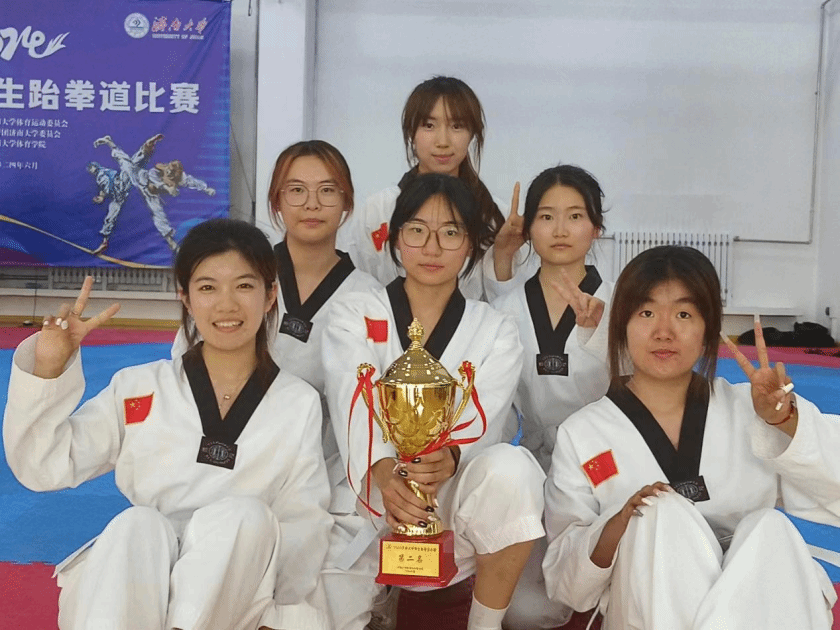 为进一步落实体育强国建设的目标,推动全民跆拳道运动在我校的开展,丰富学生校园课余文化生活,6月11日,济南大学学生跆拳道比赛在北苑跆拳道馆举行,教育与心理科学学院代表队积极参加并喜获佳绩。