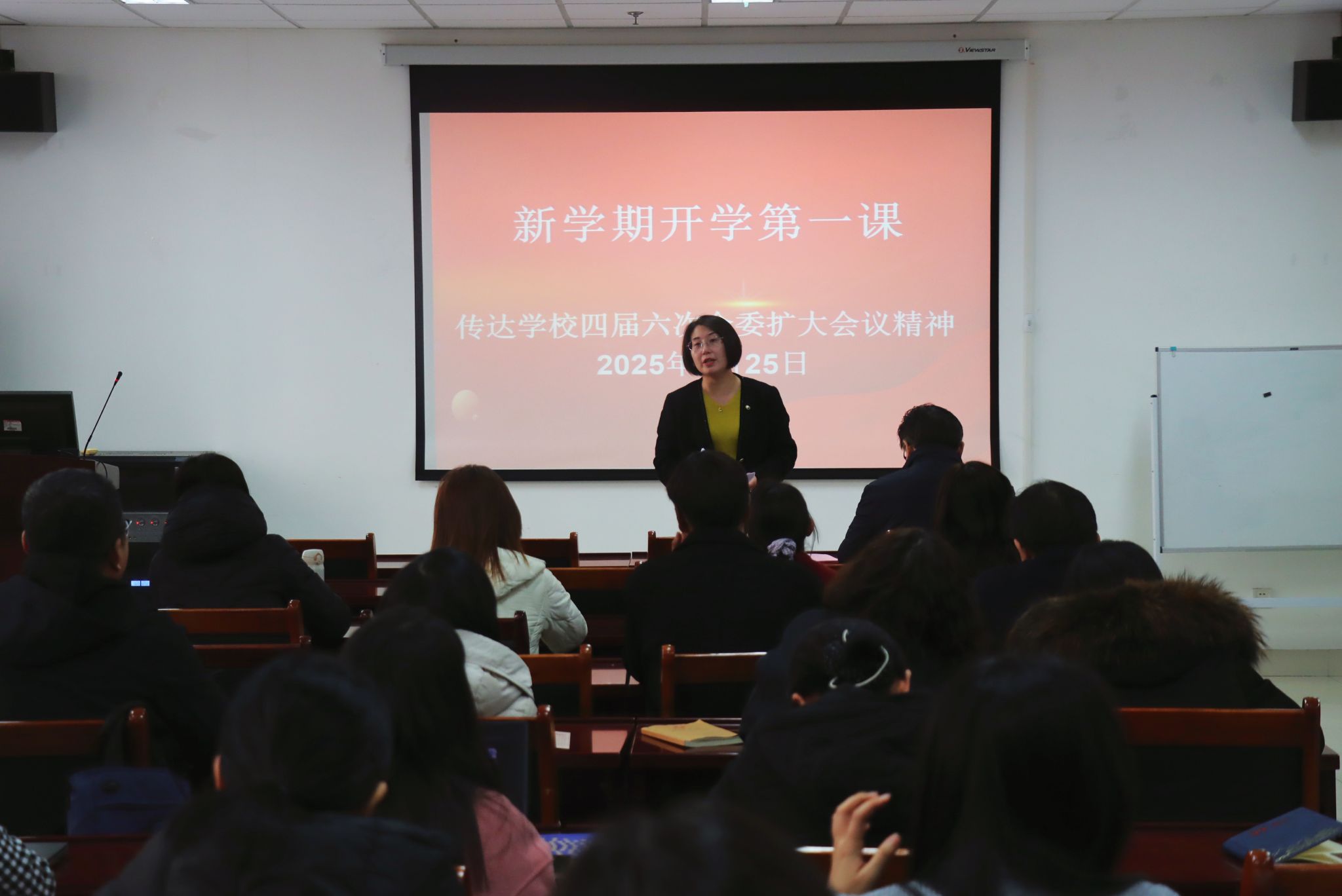 2月25日,教育与心理科学学院召开全体教职工“开学第一课”,传达学习济南大学四届六次全委扩大会议精神。学院党委书记季竹君主持会议并讲话,全体教职工参加会议。