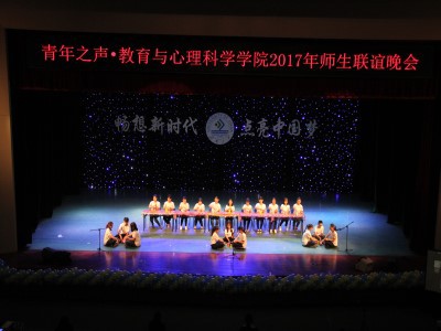 开场舞Burst拉开了教育与心理科学学院联谊晚会的序幕,首先是领导致辞环节,院党委书记王希普老师既追忆过去,总结经验,又展望未来,信心满满,充分表现了其对我院师生的深情与期盼。我院的节目表演共有10场,内容丰富多样,各具特色。歌曲串烧和创意歌舞A night party,场面热情洋溢,充分体现学院的蓬勃与激情。另有歌曲《一个像夏天一个像秋天》、《越过山丘》、乐器表演Butterfly和舞蹈Boys and girls。歌曲与乐器表演悦耳动听,舞蹈活气灵动,尽显我院深厚的文艺底蕴。