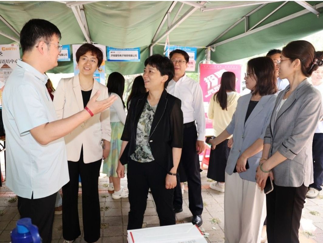 本次招聘会坚持“精准对接、多元服务”理念,吸引了济南西站经济枢纽商务区、齐鲁人才网、微聘网的关注,中国移动有限公司济南分公司、圣儒教育、章丘双语学校等130余家优质企事业单位参会,涵盖教育、科技、金融、文化传媒等多个领域,提供就业岗位450余个,吸纳就业人员超4000人。吸引了2000余名毕业生参会。
