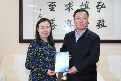 傅小兰所长对心理所与济南大学的合作表示充分肯定,并向张士强校长赠送了中国科学院心理研究所主编的我国第一部《心理健康蓝皮书》。
