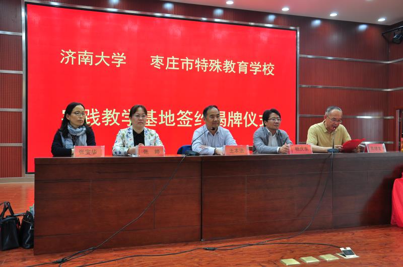 5月15日,特殊教育专业实践教学基地签约及揭牌仪式在枣庄市特殊教育学校举行。枣庄市教育局杨庆东副局长,我院王本法副院长、张婷副院长、张宝华主任,枣庄市特殊教育学校高绪龙校长及枣庄市各区县特教学校领导和全体老师参加了此次活动。