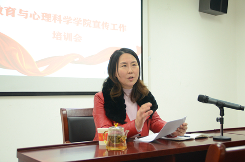 为提升学院宣传工作水平,提高学院的知名度与影响力,近日,学院于特教大楼A302开展宣传工作培训会,本次会议由学校宣传部副部长、新闻中心主任刘珂珂老师主讲。学院党委书记牛瑞斌、副院长陈功香和负责宣传工作的老师和学生参加了培训会。会议由学院党委副书记、副院长卢琦主持。