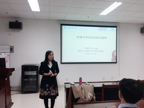 11月28日晚,教育与心理科学学院教授王树青在特教大楼A302为我院师生做了题为“哈佛大学访学见闻与感悟”的主题讲座。