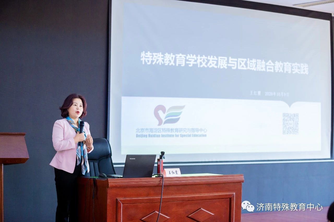 杨昭宁院长在致辞中介绍了学院特殊教育发展,指出,特殊教育是济南大学特色建设的学科、专业,在社会各界关心支持下,特殊教育在人才培养、科学研究、师资队伍建设和社会服务等方面取得了显著成绩,在争创一流大学的建设中做出了应有的贡献。济南市特殊教育中心在济南市教育局的大力支持下,近几年得到了飞跃性发展,成为全省特殊教育领域的标杆。济南大学特殊教育学院与济南市特殊教育中心有着长期的友好合作,以本次培训为契机,双方合作发展的前景将越来越广阔。