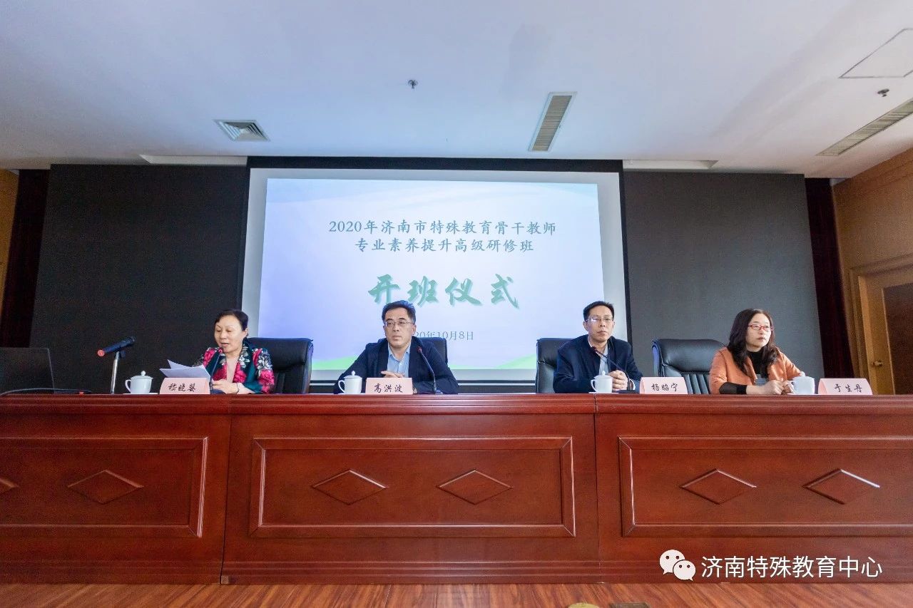 为促进济南市特殊教育教师专业发展,建设一支高素质的特殊教育师资队伍,10月8日至10月11日,由济南市教育局、济南大学特殊教育学院与济南市特殊教育资源中心共同举办的“济南市特殊教育骨干教师专业素养提升高级研修班”成功举行。济南市教育局基础教育处处长高洪波、济南特殊教育中心校长嵇晓婴、副校长于生丹,我院院长杨昭宁,学院办公室、特教系负责人,以及济南市各区县特教分管干部、各特教学校骨干教师、各普通学校承担随班就读及送教上门工作的骨干教师共100余人参加了开班仪式。