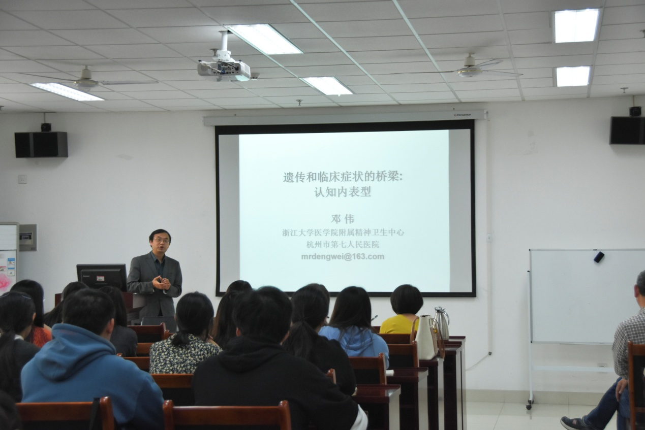 10月13日下午,浙江大学医学院附属精神卫生中心主任医师邓伟教授来我校教育与心理科学学院交流指导,在特教大楼A302会议室接受研究生指导教师聘请并作学术报告。研究生院副院长仲倩及部分心理专业教师及研究生参加了此次活动。报告会由教心学院副院长陈功香主持。