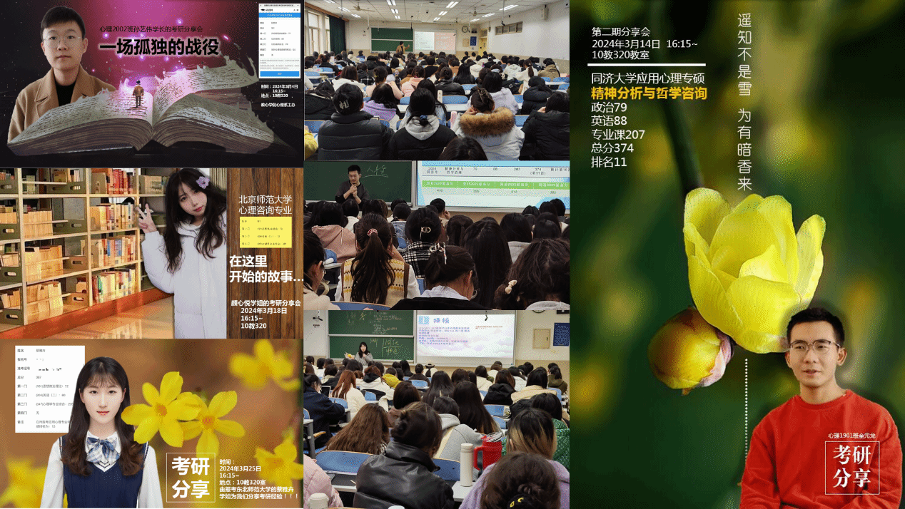 教育与心理科学学院为提升应用心理学专业学生的学业素养,推动我院本科毕业生考研升学指导工作开展,2024年3月,心理系协同学院学生办公室共同开设了四期专场考研分享会。分享会分别邀请了四位考研成就优异的学长学姐,面向应用心理学专业2021级同学进行了经验分享,激励同学们的考研学习热情,让同学们明确考研目标、坚定考研决心,掌握考研技巧。