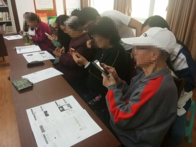 迎着飒爽的春风,志愿者们迈步来到了阳光一百小区。在路上不断有老人与志愿者们打着招呼。到达“教学课堂”,还未等到上课,老人们就已三三两两地将志愿者围住,向志愿者展示着上节课留下的“作业”。教学伊始,志愿者先带老人们回顾了上节课所讲的知识。复习完了后便开始本节课的重点——教老人如何使用微信的附加功能。志愿者们两两分组,以一组对一人的方式帮助老人熟悉着微信的公众号、群聊等功能。当有老人在实践中出现问题时,志愿者一边对老人进行更详尽的讲解,一边鼓励老人再次进行尝试。最终,伴随着志愿者的帮助,老人们全数学会了公众号的使用,并且在志愿者的协助下建立了自己的微信群。