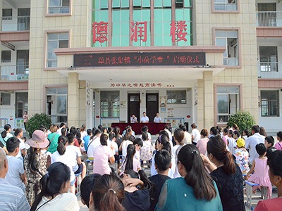 7月15日上午,菏泽市单县张集镇中心小学举办了小荷学堂开班仪式,教育与心理科学学院“深藕荷色,结子生青”爱心助教社会实践团的志愿者们参与了该活动。出席本次大会的还有中心小学王续亮校长,张集学区主任岳斌,张集镇团委书记张磊,张集学区办公室主任、总辅导员王方升以及中心小学学生及其家长。