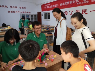 为深入了解教育与心理科学学院各个社会实践团的志愿服务活动的进展,确保各项工作的顺利展开,7月16日上午,教育与心理科学学院教师代表——办公室主任卓华丽、院团委书记范雅文老师来到了济南市市中区鲁贤社区,为“松柏之茂,携手并肩”社会实践团的队员们送来了亲切的问候,并代表济南大学教育与心理科学学院访问了鲁贤社区。