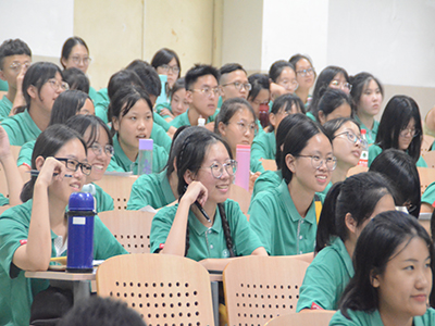 课程伊始,季老师先在黑板上写下自己的名字,黑板白字之间,三个大字笔走龙蛇,苍劲有力,赢得学生一片叫好声;以书法为切入点,季老师深入浅出地介绍了中华优秀传统文化,并对新生提出“学习”、“继承”、“发扬”中华文化的三个要求。随即,季老师又向同学们谈起一个人学识与气质的内在联系。“腹有诗书气自华”,一个人博学多才、饱读诗书,他所展现的气质必然非同凡响,季老师如此说道。一个半小时的脱稿演讲,季老师全程收放自如、条理清晰,牢牢把握着学生们的兴趣,一场演讲完毕,满座掌声雷鸣,所谓“腹有诗书气自华”,即是季老师本人的言传身教。