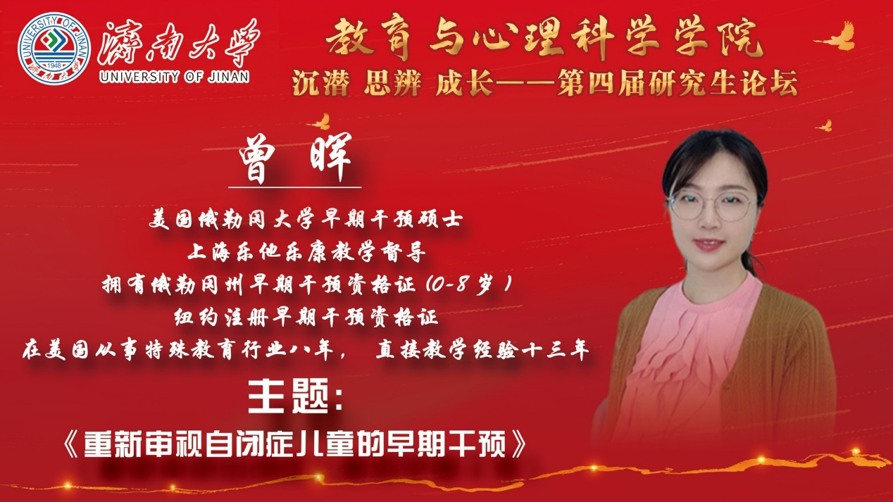 为推进学院科研工作进一步开展,促进研究生进一步了解如何对自闭症儿童进行早期干预,2021年11月29日,教育与心理科学学院成功举办第四届第一期研究生论坛,本次论坛邀请美国俄勒冈大学早期干预硕士、上海乐他乐康教学督导曾晖老师进行线上科研经验分享,由副院长陈功香教授主持,学院20级、21级特殊教育系研究生及部分教师参加了此次论坛。