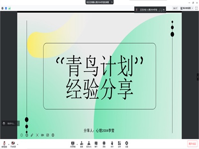 为帮助学生了解“青鸟计划”,积极参与社会实践,5月3日下午,教育与心理科学学院通过线上会议的形式举办“青鸟计划”社会实践分享交流会。本次活动由参与寒假社会实践“青鸟计划”的优秀学生代表担任主讲。