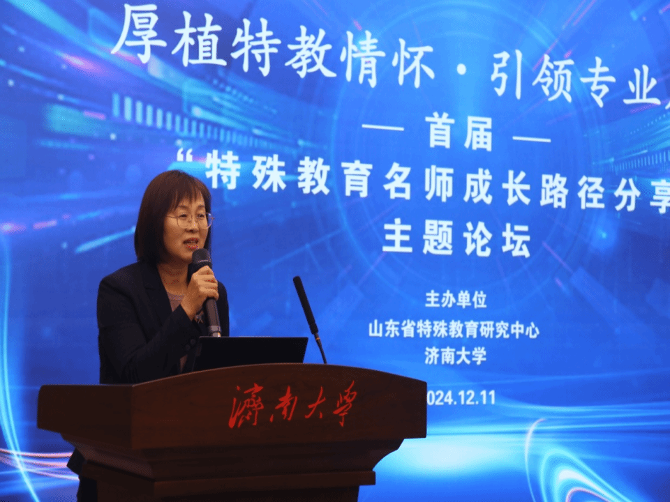 12月11日,山东省特殊教育研究中心与济南大学联合举办了首届“特殊教育名师成长路径分享”主题论坛。此次论坛旨在通过分享特殊教育领域内杰出教师的成长经历与教学智慧,激发未来特殊教育工作者的职业热情与使命感,推动特殊教育高质量发展。特殊教育专业研究生、本科生和特殊教育专业教师近100人参加了此次论坛。论坛由教育与心理科学学院陈功香院长主持。
