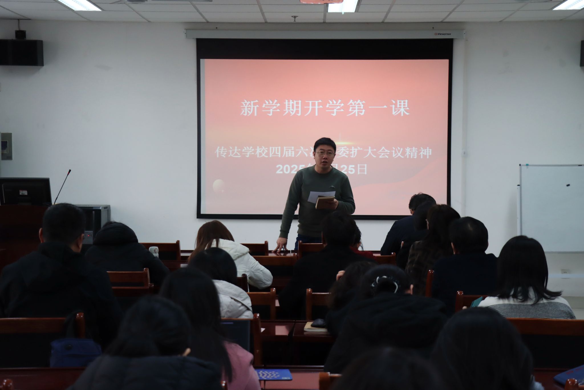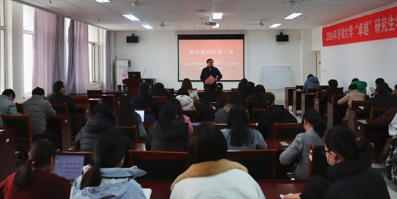 2月25日,教育与心理科学学院召开全体教职工“开学第一课”,传达学习济南大学四届六次全委扩大会议精神。学院党委书记季竹君主持会议并讲话,全体教职工参加会议。