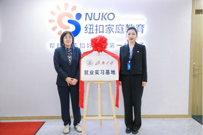 纽扣家庭教育集团详细介绍了公司的发展历程、基本业务范围和社会服务的基本情况,回应了学院关心的岗位要求、员工基本薪资以及员工成长机制等问题,并提出双方共建专家工作站。双方还就共同开展人才培养、实习实训基地建设、科研项目合作等方面进行了深入交流,并签署了合作共建协议,双方领导共同为“济南大学实践教学基地”“就业实习基地““大学生社会实践基地”揭牌。