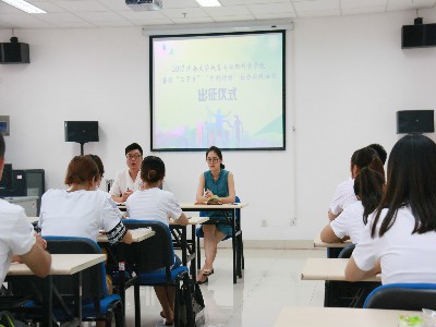 7月13日下午,教育与心理科学学院于特教大楼会议室举行了2017年教育与心理科学学院暑期“三下乡”、“千村行动”社会实践活动出征仪式。参与出征仪式的有党委副书记季竹君,团委书记纪祥,辅导员魏文静以及四支志愿服务队的四十余名志愿者。