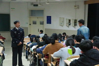 讲座伊始,黄警监先向同学们介绍了警察这一职位的古今称呼演变,对古今的公安科技进行论述,魔高一尺,道高一丈,科技为公安工作插上了翅膀,黄警监进而展示了当今高科技警用装备如:人脸识别、监控等及各类装备的设计理念。其中,黄警监特别强调了个体处于危险时的自救意识和配合警察公务的重要性。讲座最后,黄警监还与同学们进行了答疑解惑的互动,精辟的解答赢得了同学们的阵阵掌声,现场气氛热烈、思辨纷呈,本次讲座得到圆满结束。