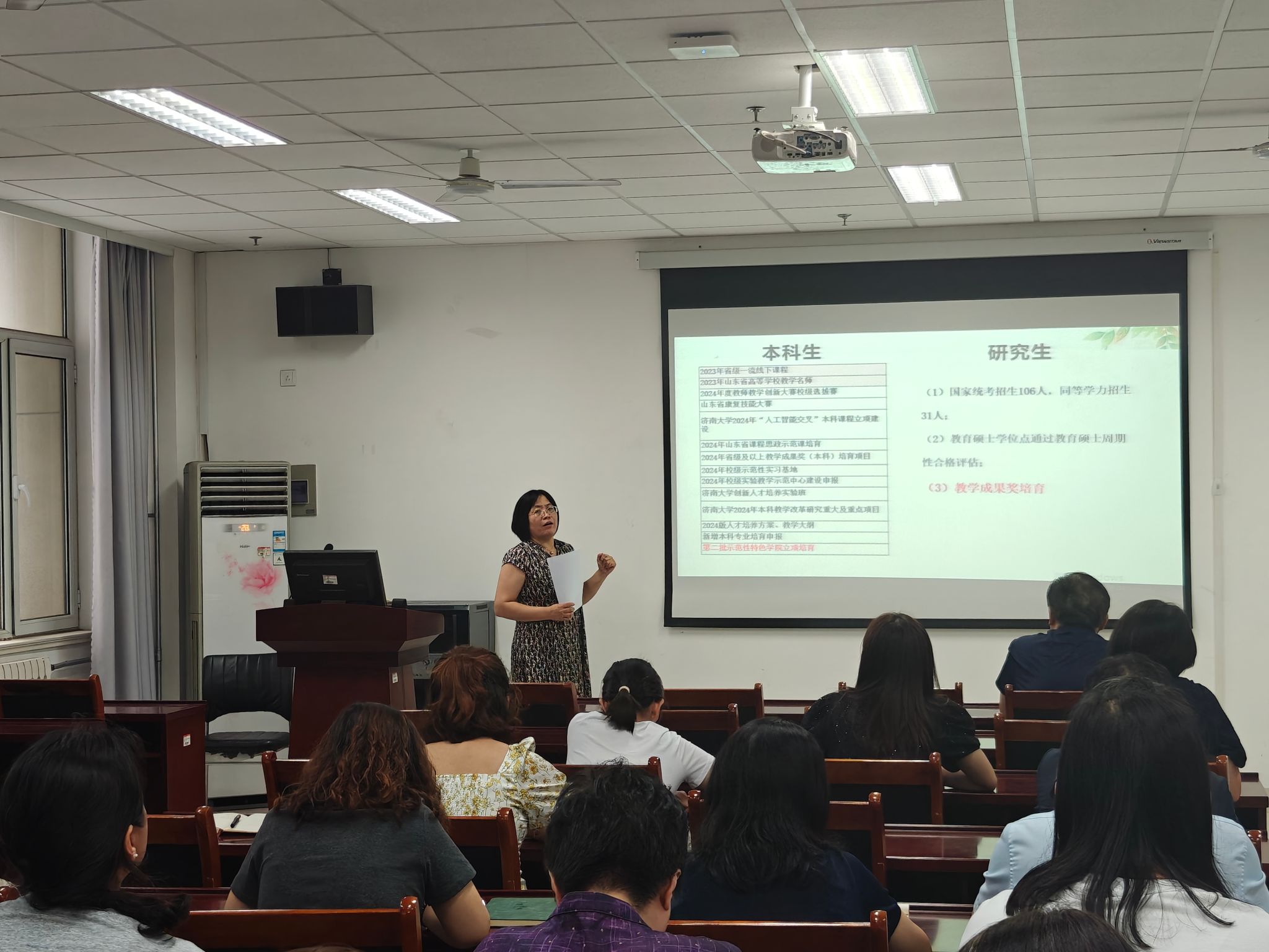 8月24日,教育与心理科学学院召开全体教职工“开学第一课”,传达学习济南大学四届五次全委会扩大会议精神。学院党委书记季竹君主持会议并讲话,全体教职工参加会议。