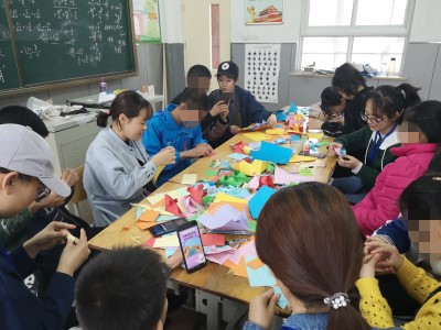 活动当天,志愿者与孩子们见面后,通过手语了解彼此,知道彼此的名字,增进了双方的感情。气氛恰好时,志愿者开始与孩子们玩“传话筒”的游戏。虽然是以手语的方式,但志愿者与孩子们依然感受到了别样的快乐。接下来的折纸活动中,志愿者将孩子们按人数分为几个小组,然后将提前在网上学习的折纸技巧和方法,讲解并演示给孩子们。不仅如此,在后续的捏橡皮泥和读唇猜词游戏中,志愿者与孩子们之间的心理距离不断拉近,孩子们也绽放出越来越多的笑颜。在休息的过程中,志愿者进一步与孩子们交流谈心。谈话过程虽短,志愿者的耐心与亲切依然如同春日的微风一般,温柔地抚慰了孩子们的心。活动的最后,孩子们和志愿者分别发挥创造力和想象力完成自己的独特作品,并互赠自己的折纸作品作为礼物。