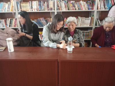 活动开始,志愿者们先帮助老人复习了之前学过的内容,经过一个周的沉淀,老人们已经掌握了手机的基本操作,但仍然存在一些疑问,针对老人们提出的问题,志愿者们认真又耐心地解答,直到老人们完全理解为止。随后,志愿者们结合自制的PPT向老人讲解今天要学习的新内容,一对一地与老人互动,让理论内容变成了简单易懂的实践操作。最后,志愿者们又针对新的学习内容进行答疑,一下午的学习让老人对智能手机的了解更进一步。看着老人认真学习动手操作智能手机,志愿者们内心也感到充实快乐。