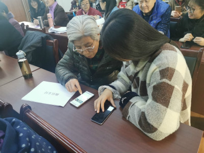 得知志愿者的到来,老人们对志愿者表示了热烈欢迎。在一番融洽的交谈寒暄后,志愿者们首先帮助老人们进行知识回顾,加深老人对手机使用方法的印象,随后便展开了本次的学习活动。志愿者们手把手、面对面地教会老人微信支付、查询实时公交等网络技能,并在讲课完毕后对老人们进行一对一辅导,解答老人的疑难问题。时光在融洽温馨的气氛中悄然过去,但温暖久久萦绕在众人心头。