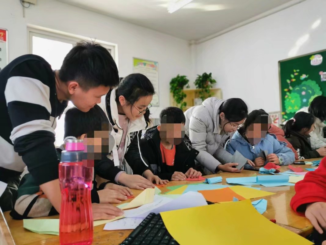 活动伊始,志愿者们和孩子们一起观看影片,孩子们认真观看,不时地与身边小伙伴交流感想。观影结束后,孩子们分成五组,开展折纸活动。活动现场气氛温馨而融洽。志愿者们与孩子们密切互动,孩子们也积极动手,一张张五颜六色的手工纸在孩子们的手中奇迹般的变化成造型别致、美丽可爱的手工作品。在折纸过程中,志愿者们也努力用手语与孩子进行交流,拉近了与孩子之间的距离,用爱心带给孩子们温馨与快乐。近距离的沟通让孩子们脸上绽放出灿烂如花的笑容,志愿者们也收获了满满的成就感。