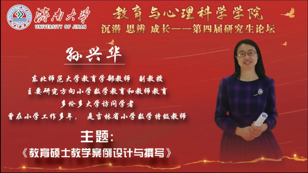 教育与心理科学学院第四届研究生论坛第五期于2021年12月2日在线上成功举办,邀请东北师范大学教育学部教师、副教授,多伦多大学访问学者,吉林省小学数学特级教师孙兴华老师开展了题为《教育硕士教学案例设计与撰写》的主题讲座,由张素玲教授主持,学院20级和21级研究生以及部分教师参加了此次论坛。