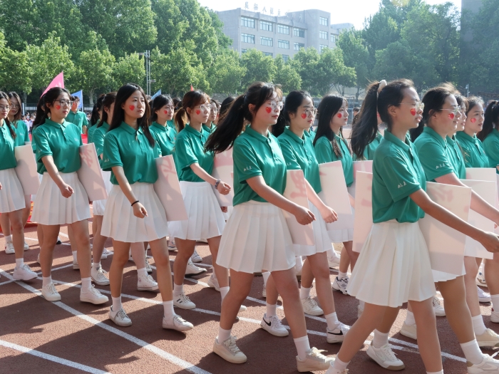 4月27日,2023年济南大学田径运动会在主校区北院体育场隆重开幕。开幕式上,教育与心理科学学院踏着坚定自信的步伐向主席台走来,精心设计的方阵、青春灵动的着装、阳光活泼的健身操向全校展示了教心学子的魅力风采,赢得场上阵阵欢呼。