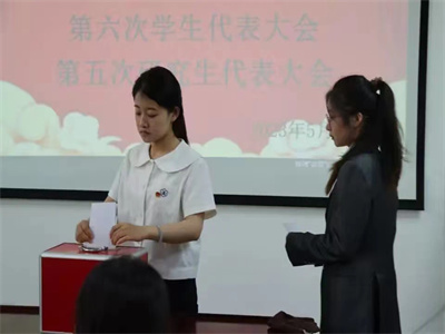 大会在清点到会人数,确认选举资格后正式开始。张耀方代表学院上一届学生会、研究生会宣读工作报告。报告回顾并总结了过去一年学院学生会组织开展的各项工作及取得的丰硕成果,深入分析了新形势下学院学生会发展面临的机遇和挑战,提出了推动学院学生会高质量发展的思路和举措,号召同学们建言献策,为提升和完善学院团学工作贡献青春力量。随后主持人依次介绍候选人基本情况及应选名额,说明选举要求。大会依规设监票人、计票人,分发和回收选票,采取无记名投票的方式进行差额选举。最终,会议选举产生马成华等12名学生作为济南大学第六次学生代表大会代表。根据投票结果,选举仇若彤、何杰为学院新一届学生会主席团成员,梁庆娥、谢培超、宋行雨为学院新一届研究生会主席团成员。当选代表们纷纷表示,将以打造一流学生组织为目标,扎实开展各项工作,充分发挥学生会、研究生会学生督查、管理、服务的职能,有效推进学院学生工作开展,为学生提供优质服务。