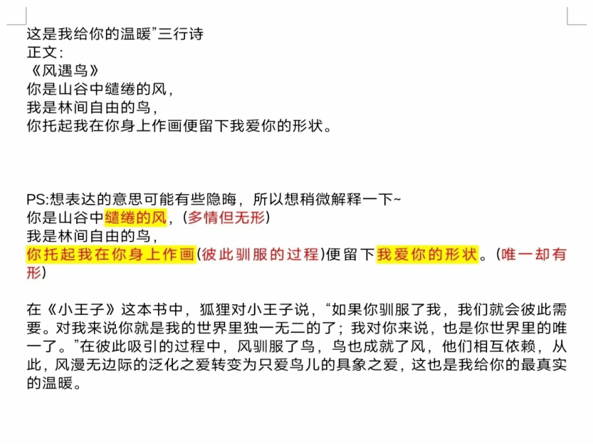 通过本次“这是我给你的温暖”三行诗活动,为同学们提供了一个传递善意与温暖的平台,促进了人与人之间的交流;激发了我院学子的创造力,营造了充满诗意和人文关怀的文化氛围。教育与心理科学学院将持续培养学生的创造能力以及文化素养,努力创造和谐的校园氛围